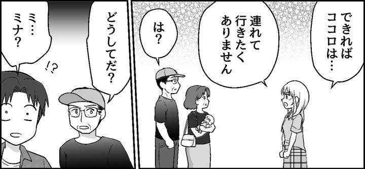 義実家に娘を連れて行くのは二度とごめんです。母が言うとおり私がなんとかするしかないのでしょう。うちにやってきた義両親に、私ははっきり伝えることにしました。突然話を切り出した私に、ショウタは戸惑っています。