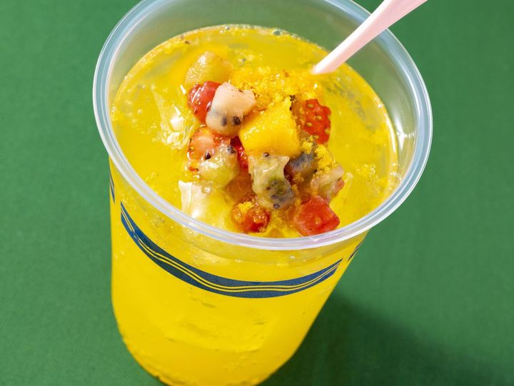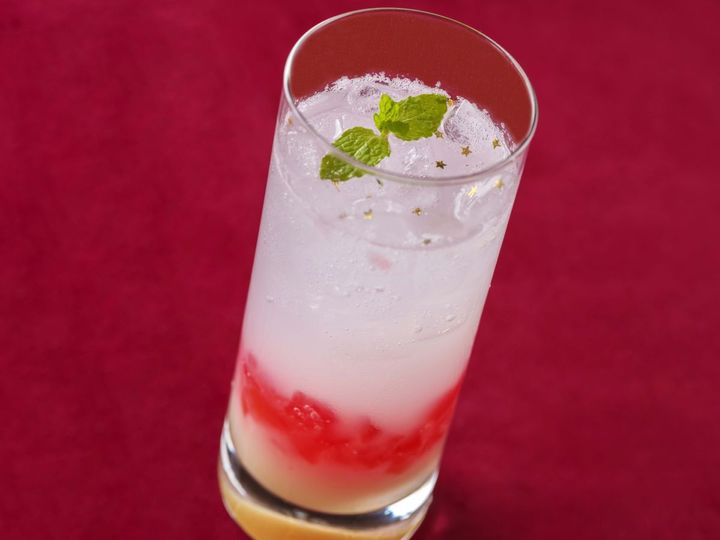 ラズベリーリキュールの赤と、パイナップルの黄色が色鮮やかなカクテル。甘酸っぱさと、ゴロゴロとした果肉の食感が楽しめます。