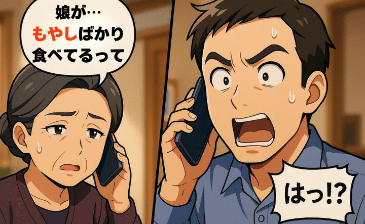 義母によると、妻は「毎日もやしばかり食べている」と話しており、実際に会ったときもかなり痩せていて、食生活が本当に貧しいように見えたとのことでした。義母はその様子に心を痛め、私に電話をかけてきたのです。