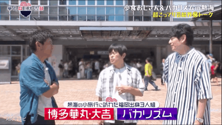 そんな華大を「九州男児の塊だから」と評することで一線を引く、バカリズムのさすがの立ち回りが光るやりとりの模様は、10月26日に放送された街ブラバラエティ『華丸丼と大吉麺』(ABCテレビ)で放送された。TVerでも無料配信中。