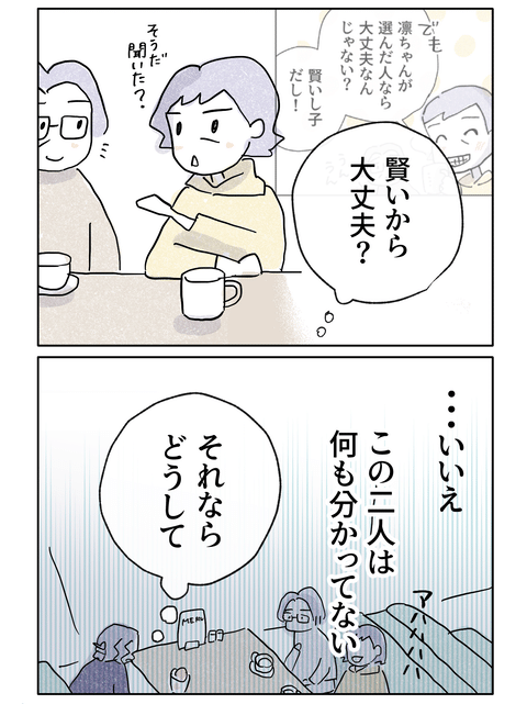 賢いからこそ、大切なことを見落としてしまう。そう考えた母は、ついに凛の結婚相手と直接向き合う決意をするのでした。