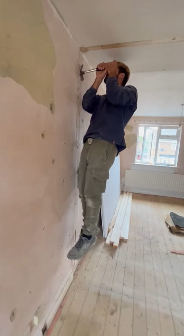 動画が撮影されたのはイギリス。 男性が壁に刺さった釘を抜こうとしている現場を捉えた映像です。