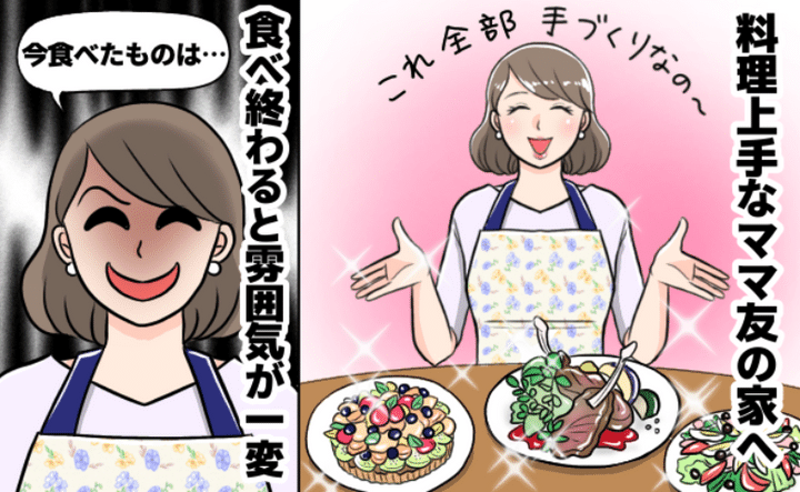 上の子が1歳のころ。ベビースイミングスクールに通っており、仲良くなったママ友がいました。そのママ友と話していたときに別のママから声をかけられ、自宅へ遊びにいくことに。おいしい料理を食べて楽しい時間を過ごしていたのですが……。