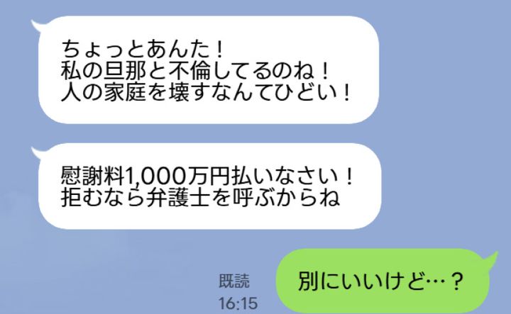 「私たち夫婦の関係を壊したんだから慰謝料1,000万円払いなさい! 拒むなら弁護士呼ぶからね」