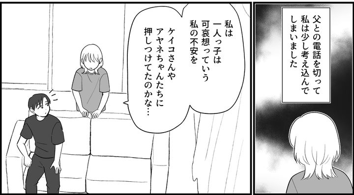 <非常識!ドタキャン義姉>「一人っ子は不幸じゃない!」父との電話を終え…気づく【まんが】