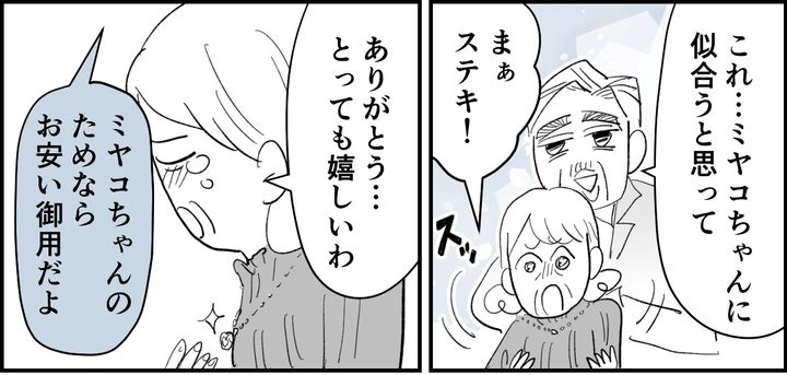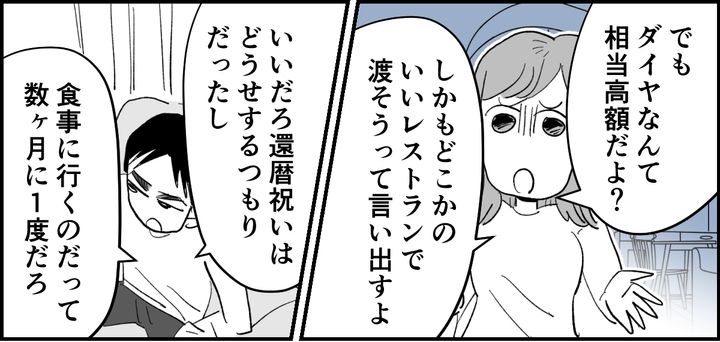<義母の彼氏サイフ出さない>60歳お祝いにダイヤのネックレス指定「はあ〜!??」【まんが】