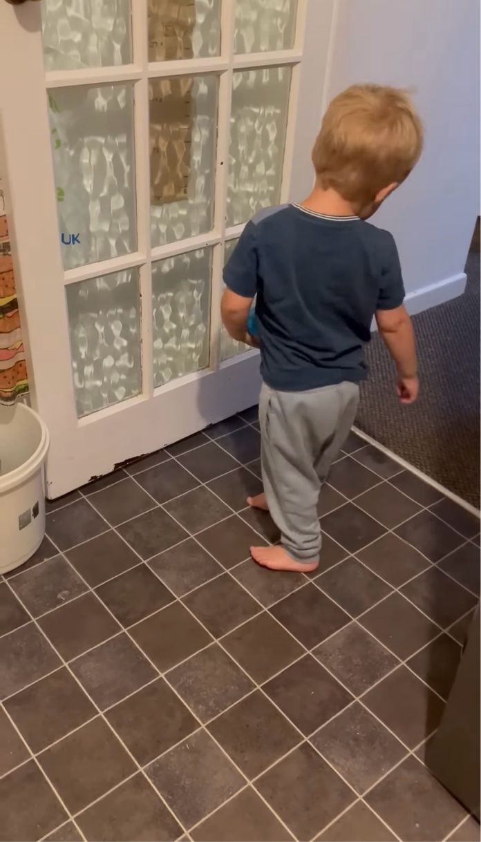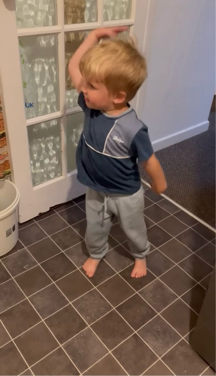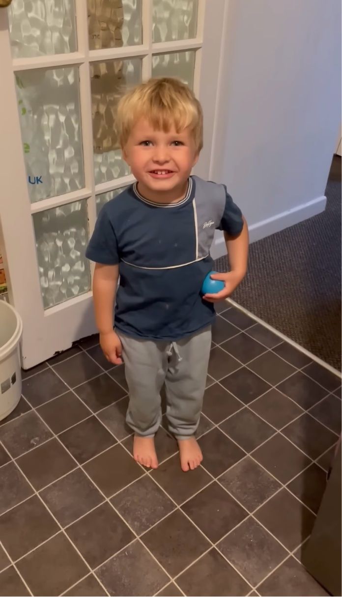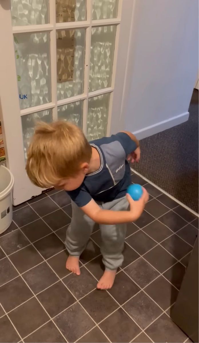 カメラの前で無邪気に動き回っているこちらの男の子。 その手にはブルーのボールが握られています。