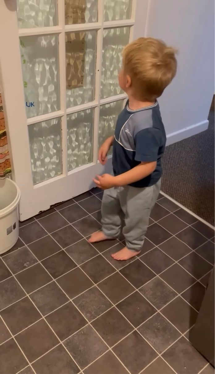真上にボールを投げるも、そのボールを見失った男の子。 ところが、まさかの展開を迎えたのです!