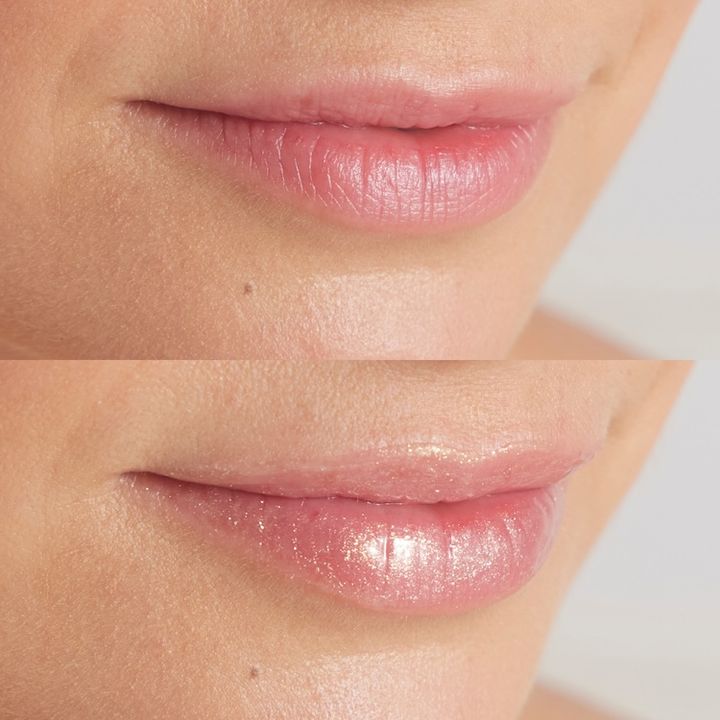唇にパール大をのせてマッサージするように馴染ませれば、華やかな彩りで心までときめくひとときを体感できるかも。