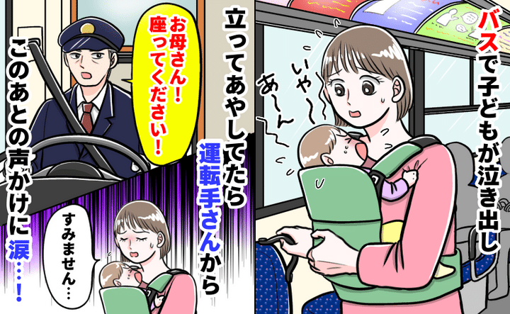 運転手「お母さん!座って!」バスで娘が号泣し立ってあやしてたら注意。でも…次の瞬間、涙したワケは