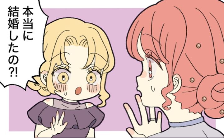 3カ月後、別の同級生の結婚式で友人と会いました。彼女は私が左手の薬指に指輪をしているのを見ると、「本当に結婚したの!?」と驚いていたので、不思議に思いワケを尋ねてみると……。