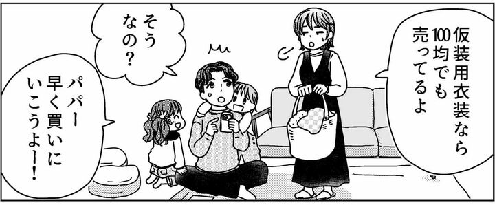 衣装などの準備を済ませた翌週、いよいよハロウィン当日がやってきました。用意した衣装を子どもたちに着せ、イベントに参加。なんとかイベントを終えてシュンが帰宅すると、子どもたちは「お菓子をたくさんもらった!」と大はしゃぎでしたが、シュンはすっかり疲れ果てていました。
