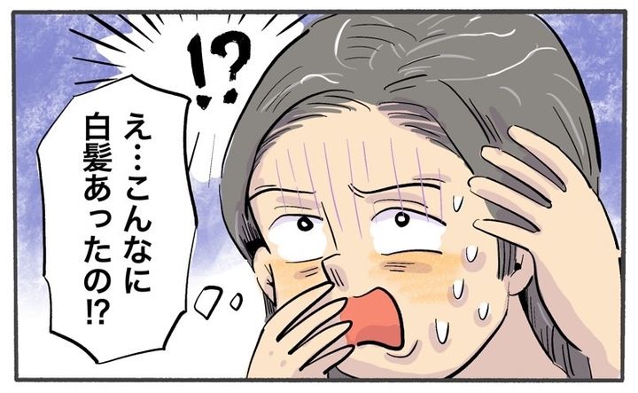 ところが数カ月たったころ、鏡を見てがくぜんとしました。生え際に数本……と思っていた白髪が、根元をかき分けると、あちこちに。数えきれないほどの白髪が潜んでいたのです。久しぶりに会った人にも「あら、白髪あるのね」と指摘されることも。