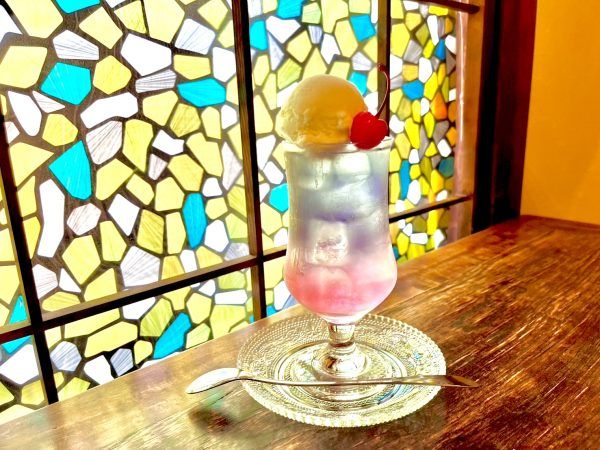とーっても素敵なこちらのクリームソーダ。今回「私の大好きな、昼でも夜でもない曖昧なカタワレ時を店主さんのイメージでクリームソーダにして欲しいです」と店主さんにお願いしました。