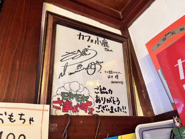モヤさま出演時の色紙もある!昭和レトロなエモい店内