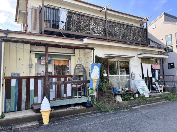 なお、カフェの入口は向かって右側にあり、左側にはソフトクリームテイクアウト用の入口もあります。
