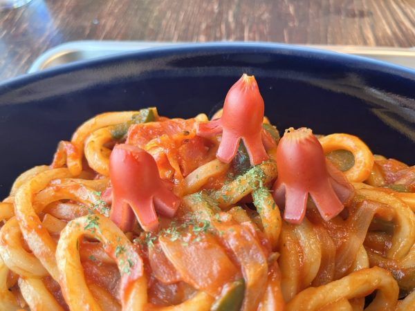 ナポリタンうどん以外に、チキンライスとドライカレーにもタコさんウインナーがトッピングされているそうです。