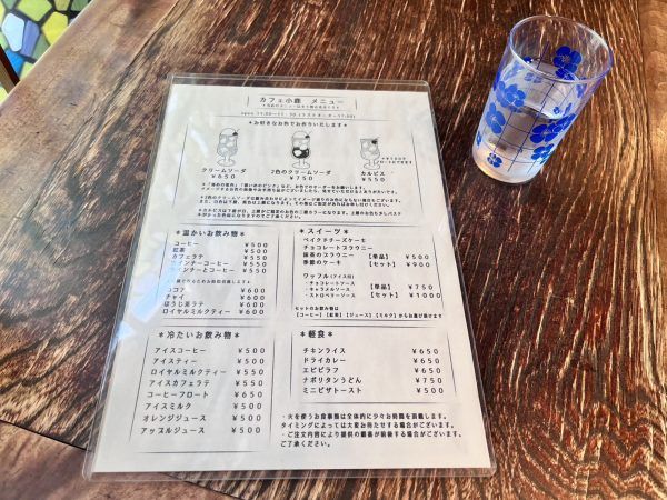 それではレトロかわいいコップに入ったお水をいただきながら、メニューを見てみましよう。