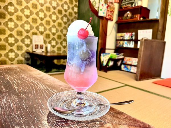 実はカフェ小鹿さんのクリームソーダは通常のクリームソーダの他、単色でも2色でも、好きな色で店主さんが作ってくださるんです♪