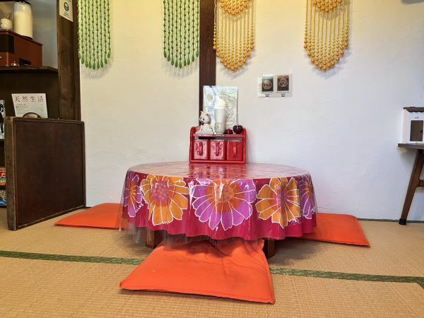 長押の上にはレコードも飾られていて、昭和の頃おばぁちゃんや親戚の家に行くとたいがいあった玉すだれもジャラジャラいっています。