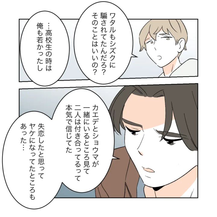 するとショウマが、「ワタルもシズクに騙されていたんだろ?そのことはいいの?」と聞きました。10年以上前のことではありますが、シズクがワタルに嘘をついていたことは紛れもない事実です。実際、ワタルはシズクの策略にはまり、カエデとショウマが付き合っていると信じ込んでいました。