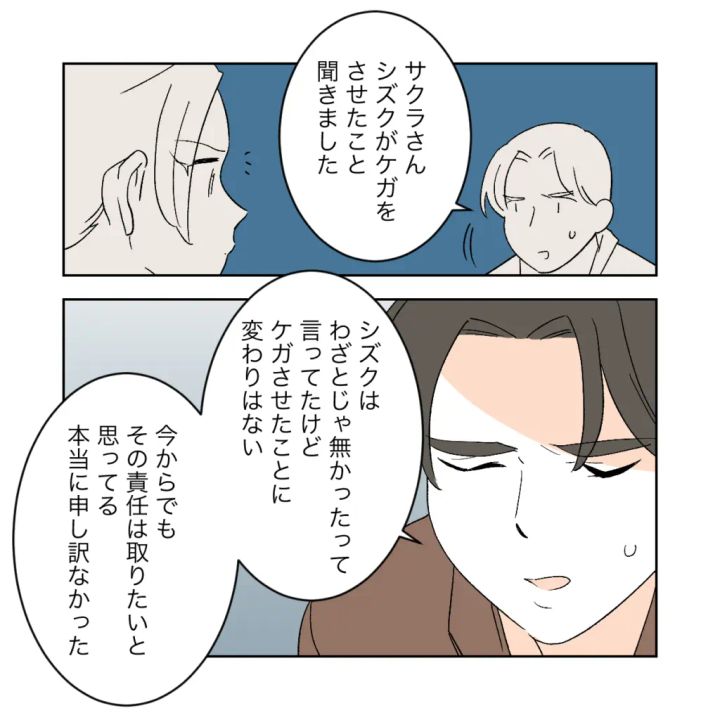 そしてサクラに視線を移し「シズクがケガをさせたこと聞きました、シズクはわざとじゃなかったって言ってたけど、ケガさせたことに変わりはない、今からでもその責任は取りたいと思ってる」と深く謝罪しました。