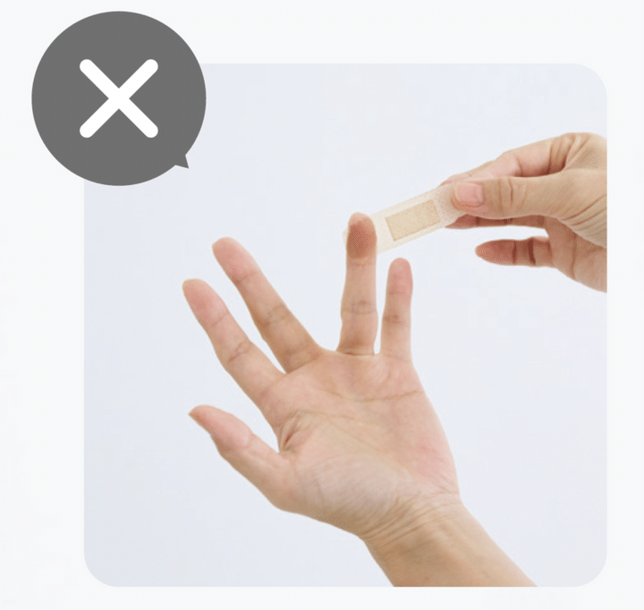 絆創膏を巻く方向が違うと効果が出ません。