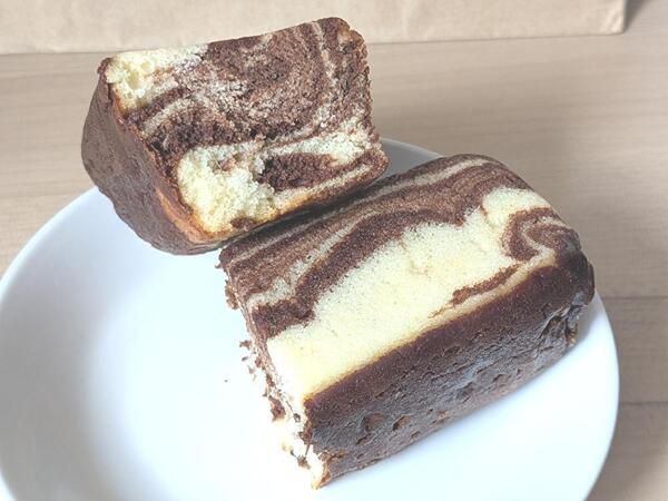 しっとりとした生地にコーヒーやチョコレートのほろ苦さ、ほどよい甘味のあるボリュームたっぷりなマーブルケーキです。