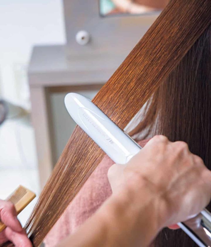 超音波アイロンで毛髪内部までトリートメントを浸透させる