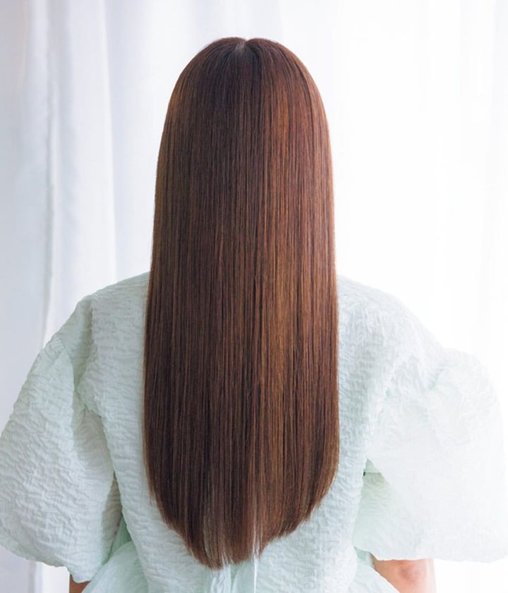髪に水分をしっかり閉じ込めるので、サラリとした触り心地。しっとりしていても、重すぎないので、好印象な仕上がりになります。(shiomi H 神戸 スタイリスト 嶋尾穂香さん)