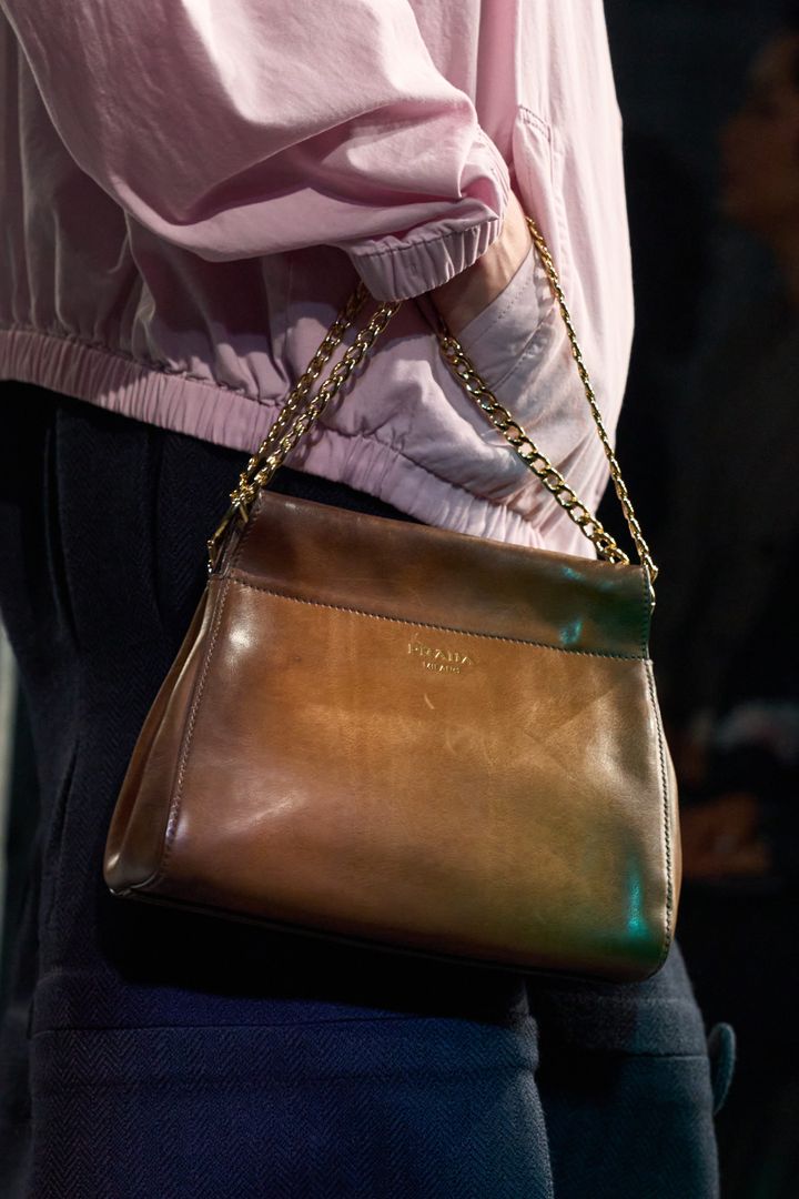 この「意図的な不完全さ」のアプローチは、前シーズンのプラダにも通じる。ブランドの定番である「ボウリングバッグ」や「ガレリアバッグ」には、わざと使い古されたようなエイジング加工が施され、コニャックカラーのレザーの端を濃く焼きつけ、経年変化を誇張してみせた。皮肉なことに、ファッションが“完璧”を装う場であるランウェイにおいて、デザイナーたちはあえて“使い古し”の錯覚をつくりだしているのだ。