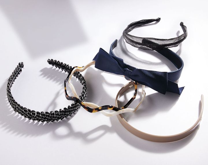 簡単にあか抜けて、浮き毛や白髪もカバーできるカチューシャは、ひとつ持っておくと便利。髪色となじむカラー、リッチ素材、細すぎず太すぎずの幅に気を付けて選べば、大人のキレイめスタイルにもマッチ。
