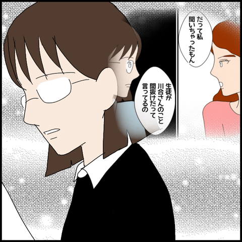 赴任直後から生徒の反感を買い孤立していた非常勤講師・岡田は、コネ採用の事実を知りプライドを傷つけられる。人気実習生・川合への嫉妬から、川合と男子生徒・三村のやり取りを「不適切な関係」と訴えるが、嘘が露見し問題行動も発覚。校長室で叱責を受け、「生徒を自分の子どもに置き換えて考えてください」と真山に諭され、渋々謝罪する。だが心の中では納得できず、苛立ちを募らせる岡田。そんな彼女のもとに叔父からの電話が入り、今度は「なんてことをしてくれたんだ!お前は自己中すぎる!」と厳しく叱責されるのだった。