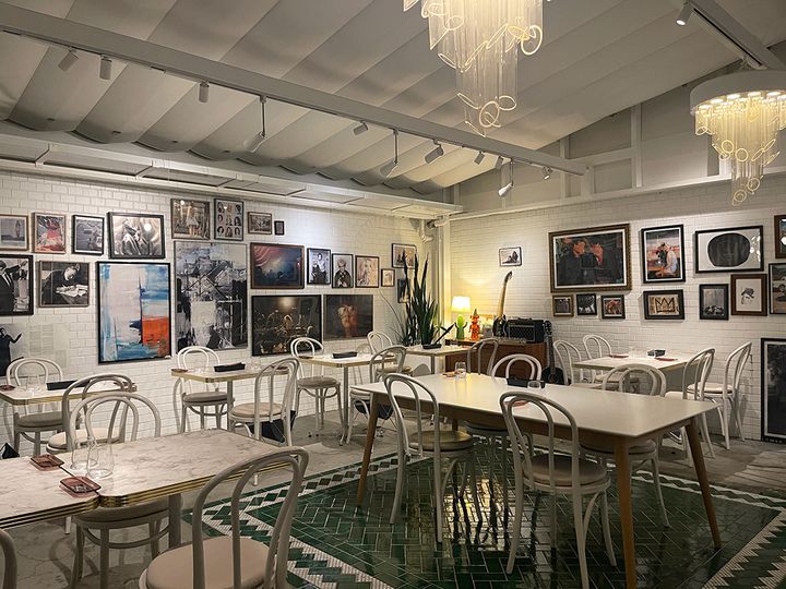 1階は壁一面に海外の絵画や写真が飾られていて、ほんのりレトロなムードが漂います。オレンジ色の照明で温かみのある空間なので、落ち着いてのんびりと過ごせそう。