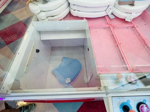 こちらは何度か店員さんに位置を戻していただき、ようやくゲットできた大人気キャラクターのクッション。取れた時の喜びはクレーンゲームならではの楽しみ。