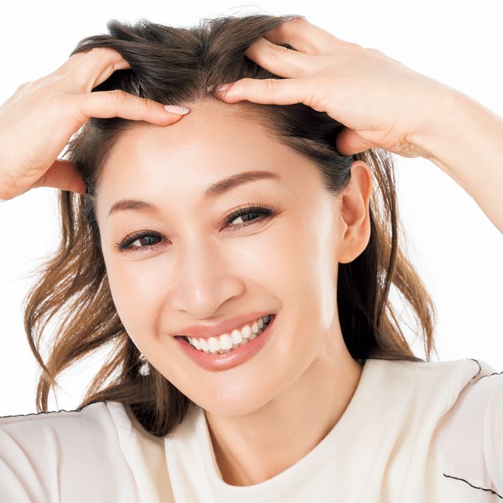 毎朝洗顔後に頭皮をマッサージして、頭のコリやむくみをほぐしてから顔をお手入れ。マッサージ後は頰が上がるし目元もぱっちり!夜も同じケアをすることで翌朝のハリ感もグンとUP。