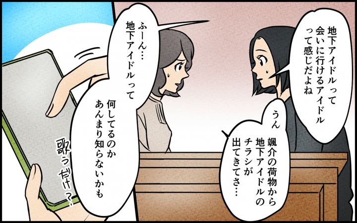 その地下アイドルと同じ名前の女性から夫のスマホにメッセージがあったということは、ふたりはプライベートでも会っているということなのでしょうか…?