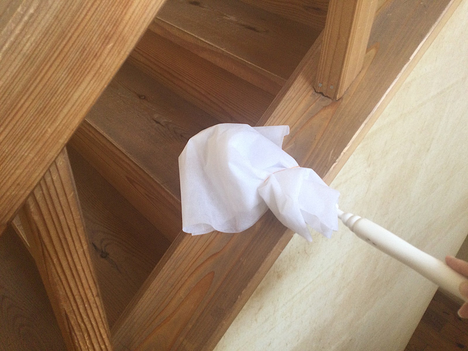 まず、不要になったクリーニングカバーを細長いものに巻き付け、輪ゴムやテープでしっかり固定しましょう。あとは、ほこりが気になる部分をやさしく撫でるように動かすだけ。テレビ台や棚の上、本の隙間などに溜まったほこりをふんわり絡め取ってくれます。