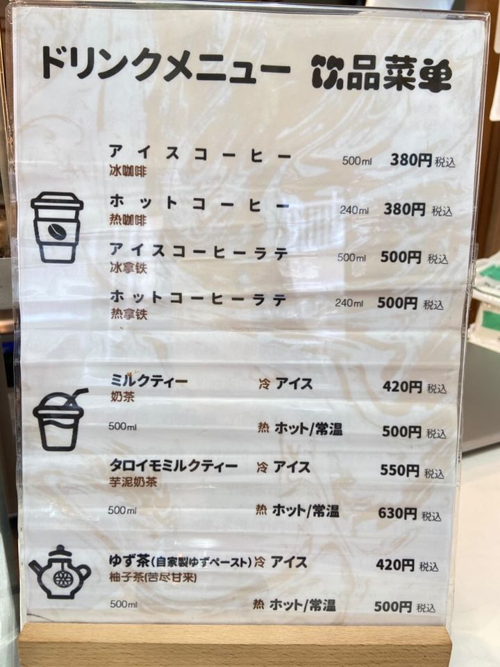 女性・男性でも入りやすい雰囲気のスイーツ店さんでした。店内入口には、3段ほど階段があるので、ベビーカーや車椅子での来店の際はご注意を。ショーケースには、シュークリーム・ティラミス・チーズロール・カットケーキ・チーズケーキ・エッグタルトなど、様々な種類のスイーツがずらっと並んでいました。ホットコーヒー・ミルクティー・ゆず茶などのドリンクやとても可愛らしいバースデーケーキ、デコレーションケーキの注文もできますよ。