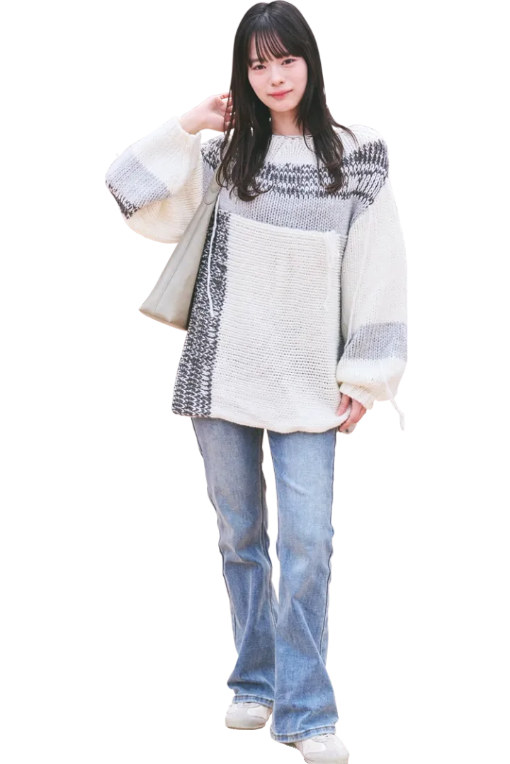 彼氏のニットを借りちゃったみたいな、オーバーなサイズ感が可愛い。好きな人と会うときも、変に盛りすぎず、ありのままの自分でいくのが私流です」