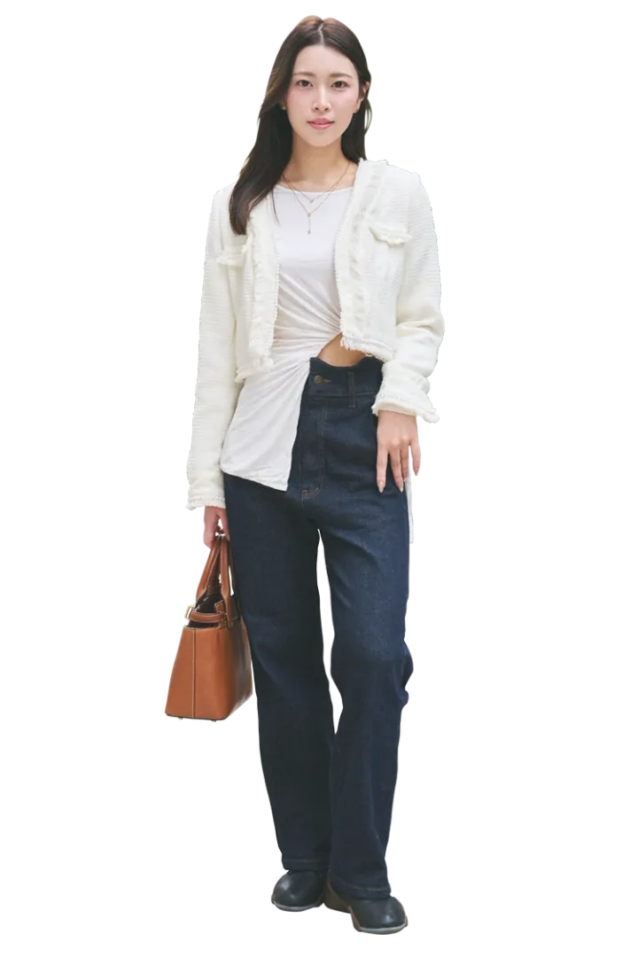 デニムのときは、上半身は大人っぽく仕上げるようにしています。約20,000円のSNIDELのツイードジャケットを羽織ってクラシカルにまとめました。