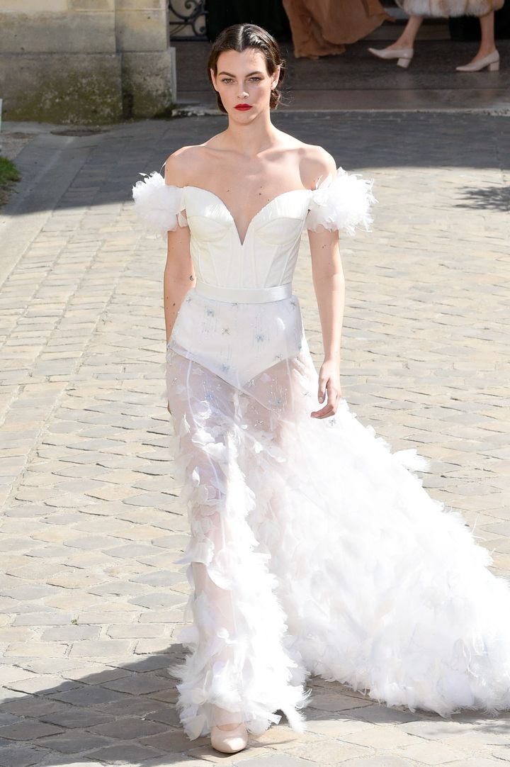 2017年7月のオートクチュール・ファッション・ウィークでは、ロシア人デザイナー、ウリヤナ・セルギエンコのショーでウエディング・ドレスをまとって。軽やかなフェザーの装飾がなんともロマンチックです。