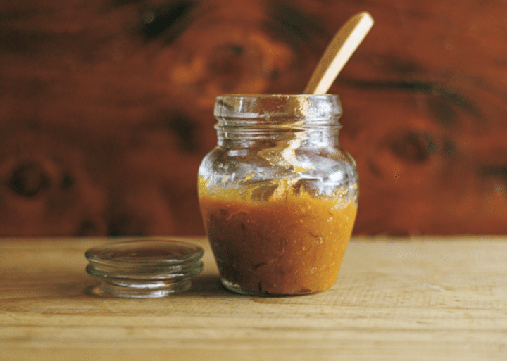 2. みりんを入れてさらに混ぜながら10 分ほど煮詰める。少しとろみが出たら火を止める。すりおろしたゆずの皮と果汁を入れて混ぜる。冷めてから容器に移す。
