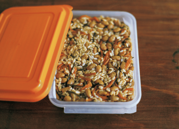 1. 米麹はもんでパラパラにしておく。納豆はパックから取り出し混ぜておく。糸昆布は水でもどしておく。にんじんは千切りにする。