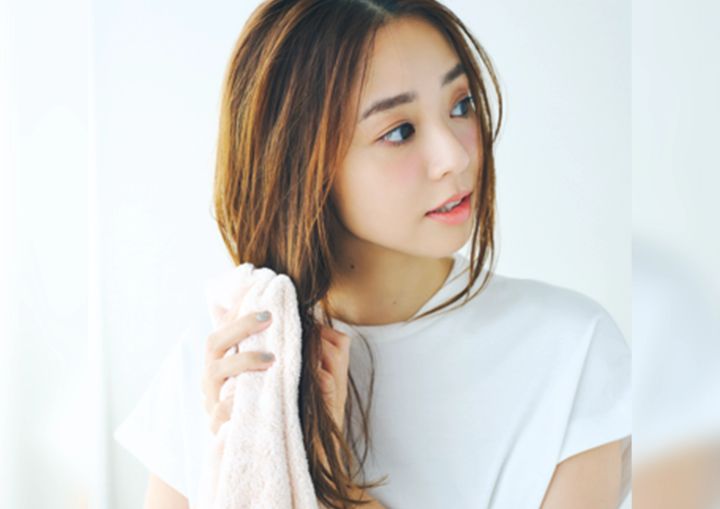 タオルで髪を挟み軽くおさえる。ゴシゴシは傷みの原因に。量が多い人は2〜3回に分けると乾きやすい。