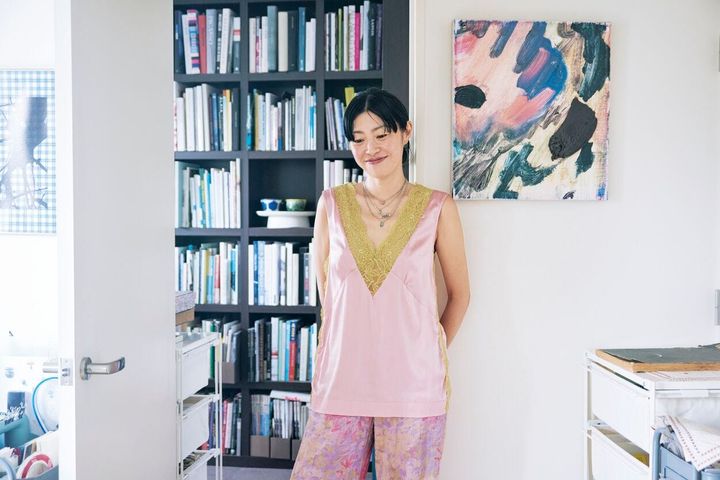「LAの撮影では、画家ネイサン・ヒルデンの奥さまをモデルに、ローラ・オーウェンズのスタジオを借りて撮影をしました。その縁がきっかけでローラのお祝いに洋服を贈ったりもしましたよ。そのお礼にと、ペインティングをプレゼントしてくれて。人と人とのつながりって、うれしいものですよね」