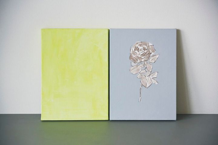 南川史門《黄色》(2009、左)、《グレー、花》(2012、右) Hearst Owned