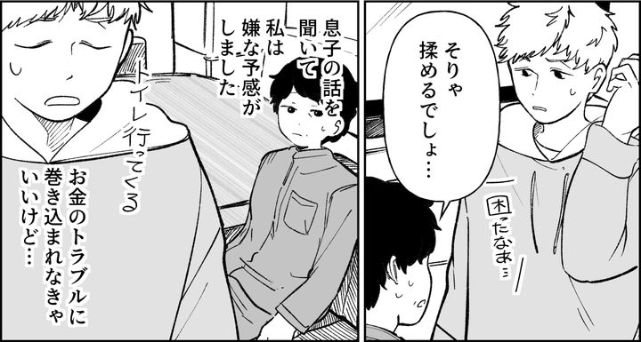 しかしそれを発端に、サークルの仲間内でなにやら揉めごとになっているようです。私は金銭トラブルに発展しそうな予感がして、息子が巻き込まれなきゃいいけど……と思っていました。
