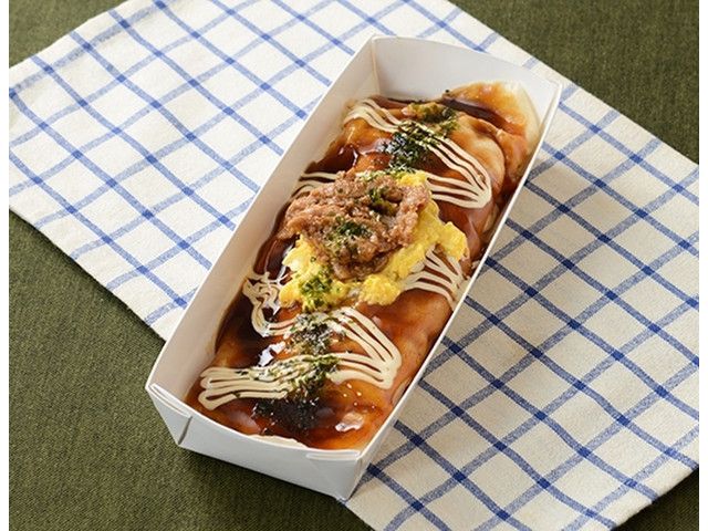 だしをきかせたたまご焼と濃いめに味つけした焼そばをサンドしました。からしマヨネーズがアクセントです。