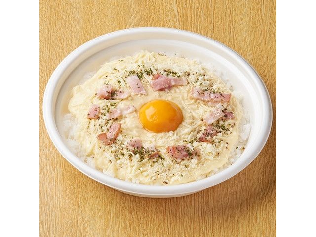 たまごとチーズのコク深い味わいのカルボナーラ風ライスです。濃厚なカルボナーラソースにチーズソースやベーコンの風味を加えた仕立てです。